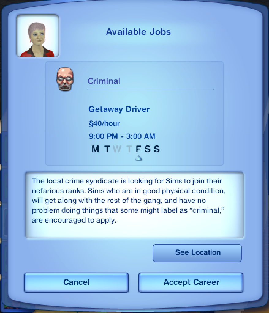Hetal got fired, and it was my fault. Whenever she had the open to steal from campaign funds, I said yes. I mean, she is Evil after all. I didn’t think she’d be able to resist. I didn’t realize she’d immediately get an offer to join the Criminal career, though. That was awesome.