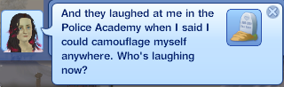 And…. Erin’s !@#$ Midlife Crisis. First of all, she completed FOUR wishes. I watched them all go. I promised everything I could and did them all, including divorcing her husband, in an attempt to get a better moodlet than “Barely Fulfilled.” That’s the moodlet I’ve gotten for every single Midlife Crisis since Generations came out. I give up.